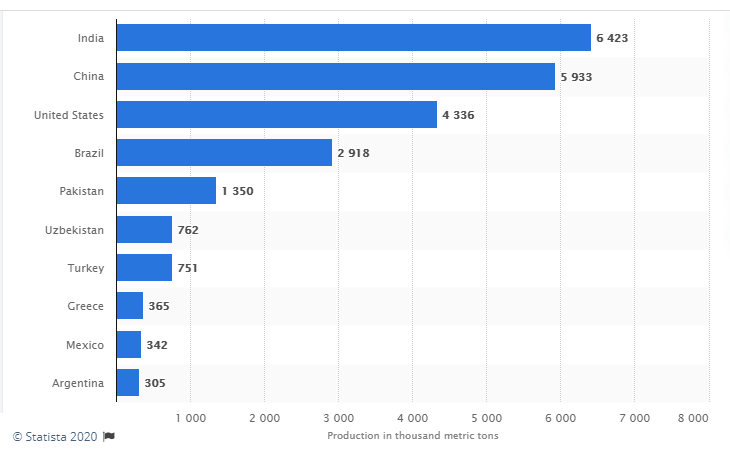 In the year 2019-2020 cotton production in India amounted to 6.42million metric tons. The export of cotton yarn and cotton fabrics accounts for about 23 per cent of India’s total textiles and apparel exports. The Crop Committee of the Association has estimated total cotton supply till end of the cotton season i.e. up to 30th September 2020 at 377.00 lakh bales of 170 kgs.